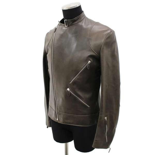 エルメス ライダースジャケット ブラウン ラムレザー ベルト メンズサイズ48 直送商品 アウター ダブル Hermes 革ジャン 本革